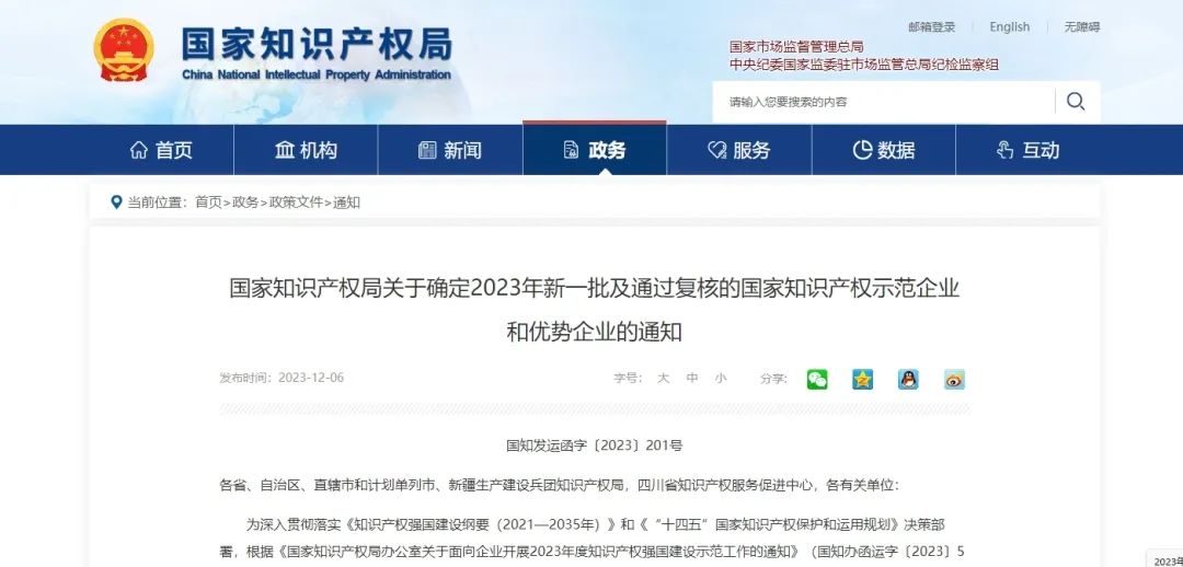 NEWS12月6日,国家知识产权局公布了2023年度国家知识产权示范企业和优势企业名单,华科泰生物及其子公司凭借自主创新能力和完善的知识产权管理体系,双双入选“国家知识产权优势企业”名单,这也是华科泰生物继“北京民营企业中小百强”后的又一重大荣誉!